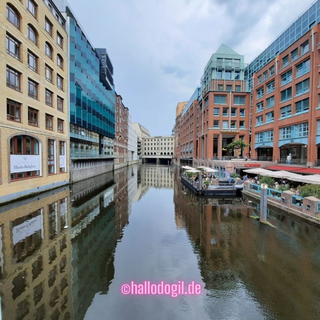 Die Umgebung ist wirklich sehr schön. Es gibt auch viele Restaurants an den Kanälen. Hamburg sieht hier ein bisschen wie Venedig aus.
